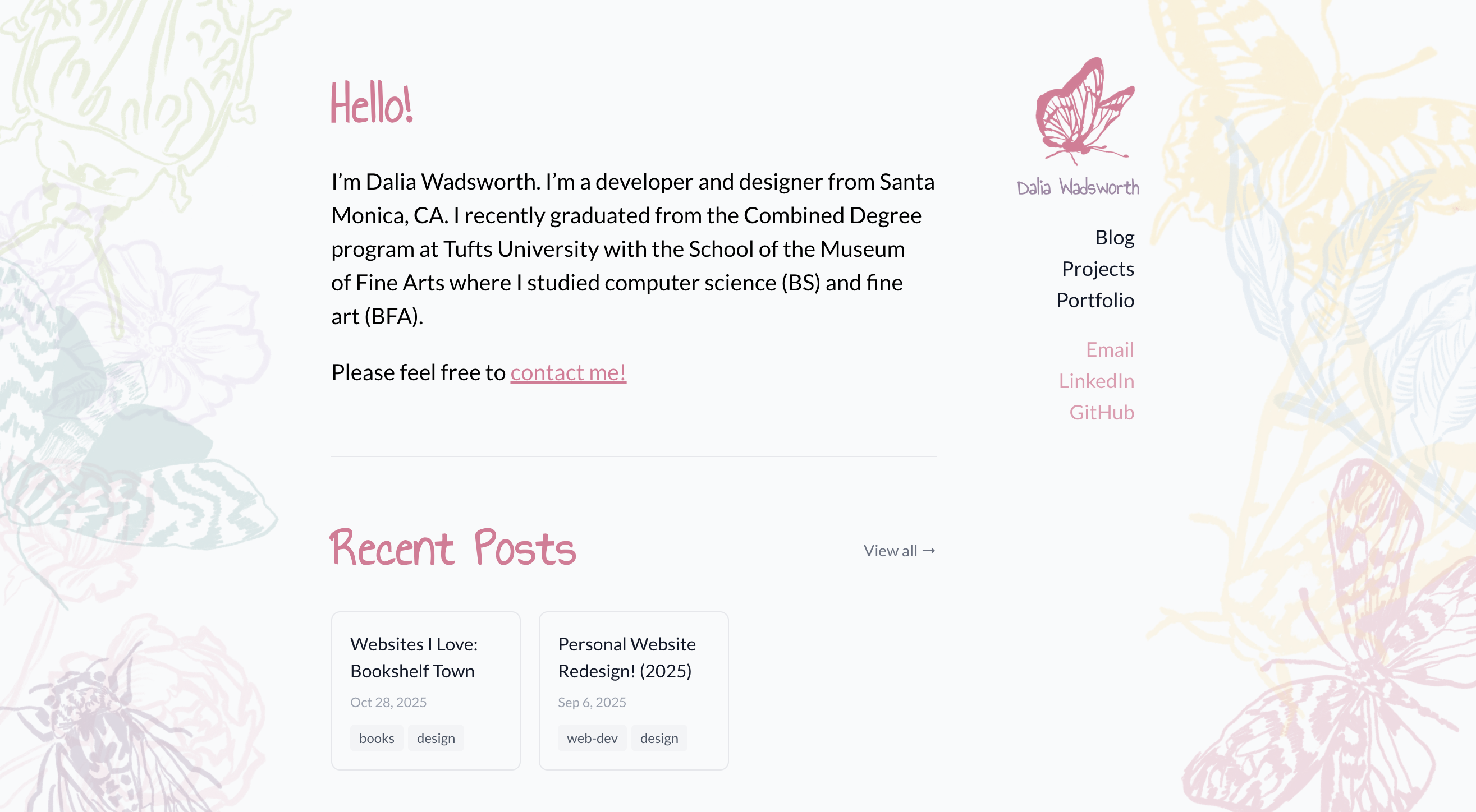 Designed and developed a site to present my personal programming and art projects, paired with a blog highlighting my process, learnings, and other interests of mine.